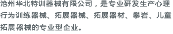 滄州華北特訓器械有限公司成立于2002年,是專業(yè)研發(fā)生產(chǎn)心理行為訓練器械、拓展器械、拓展器材、攀巖、兒童拓展器械的專業(yè)型企業(yè),并通過ISO-9001質量管理體系認證及ISO-14001環(huán)境管理體系認證,致力于各職業(yè)群體提供的心理行為訓練器械、拓展器械、攀巖、兒童拓展器械等設備,使之不斷提升心理健康水平、充分開發(fā)自我潛能。我公司竭誠為廣大客戶提供專業(yè)化各類心理行為訓練器械相關產(chǎn)品和服務。